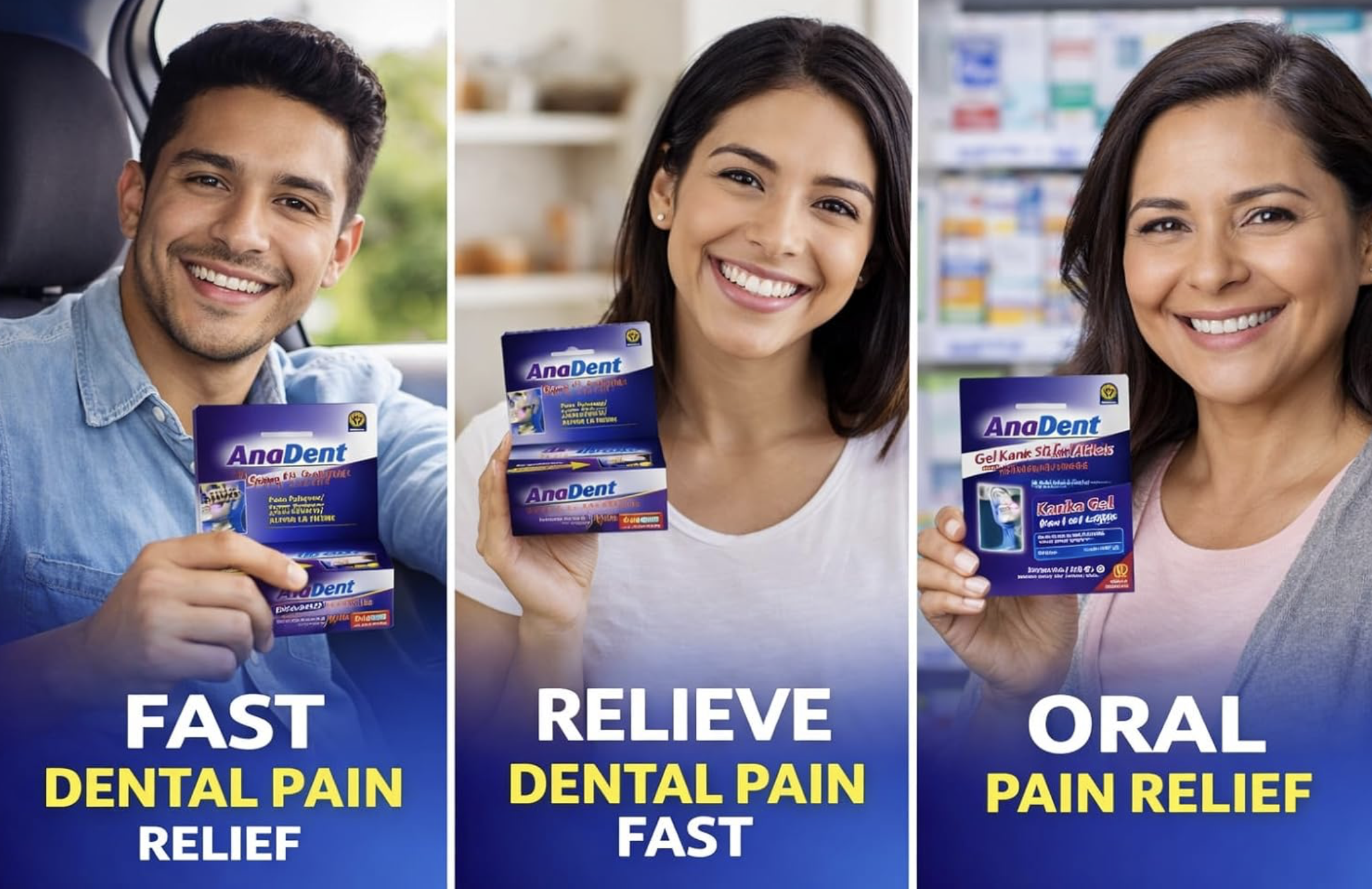 Anadent provides powerful, targeted oral pain relief with maximum-strength gels featuring 20% benzocaine for instant numbing of toothaches, canker sores, sore gums, and denture discomfort. The children's formula uses natural eugenol (clove oil) for gentle, plant-based teething and toothache relief in babies and kids. Fast-acting, easy-to-apply gels offer quick comfort, helping users eat, sleep, and smile again. Safe when used as directed, Anadent gels are trusted for rapid, effective relief from oral pain, backed by a 1-year warranty and 30-day returns.