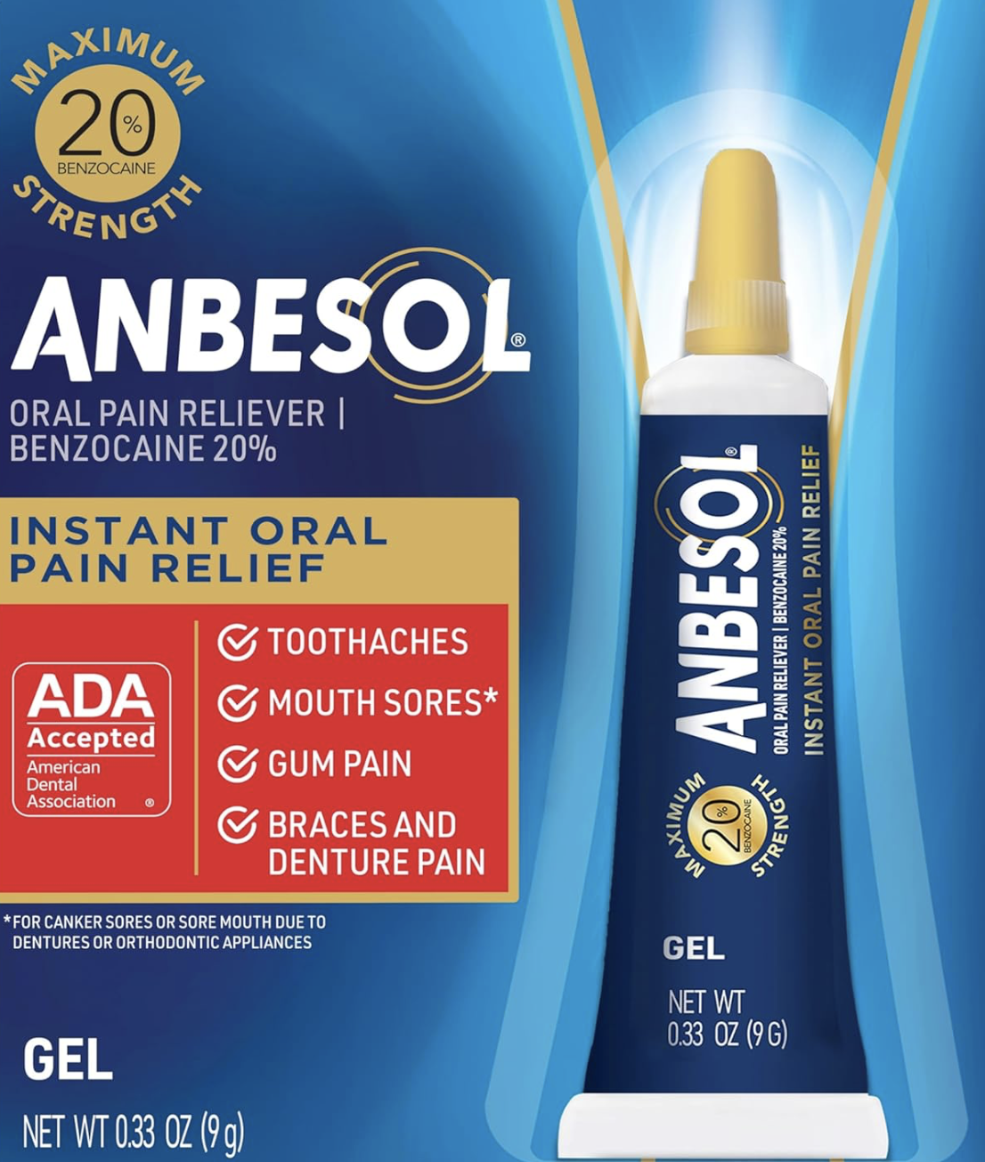 My husband woke up at 3 AM with a brutal toothache from a cavity and this Anadent 20% benzocaine gel was the only thing that helped. I dabbed a tiny amount on the sore spot with a Q-tip and within 60 seconds the pain dropped from unbearable to manageable—he fell back asleep. The next day he could eat and talk without agony while waiting for the dentist. It numbs fast and lasts a few hours per application. The tube is small enough to keep in the nightstand. We’ve used it for minor tooth sensitivity too—works like magic. This is a must-have in every medicine cabinet!
